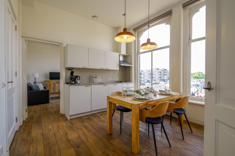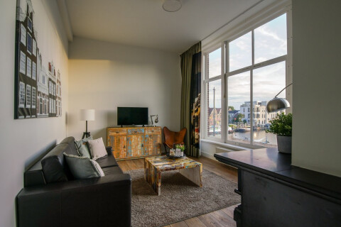 Ieder appartement is op zijn eigen unieke wijze ingericht en ingedeeld. Algemeen genomen beschikt ieder appartement over een woonkamer met een geweldig uitzicht op de haven van leiden ofwel op een karakteristieke Hollandse steeg. De keuken is uitgerust met volledige inventaris, vaatwasmachine, 4-pits-gasfornuis, afzuigkap, koelkast met vriesvak en combi oven/magnetron. De badkamer is voorzien van wastafel, toilet en douche tevens tref je hier de wasmachine aan. In de slaapkamer staat een luxe boxspring en vanuit hier heb je in de meeste gevallen direct toegang tot het gemeenschappelijk dakterras. Deze bevindt zich aan de achterzijde van het pand, waar je bij mooi weer kunt genieten van het gezellige vaarverkeer van de Leidse Singels.