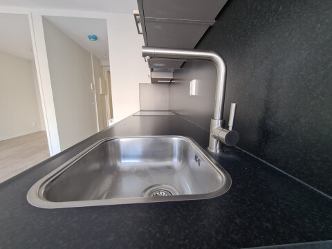 Entree aan de straatzijde via de gemeenschappelijke hal zijn de voordeuren te bereiken. Entree appartement in de hal waaruit de badkamer (4m2), welk beschikt over een inloopdouche, wastafel met spiegelkast, handdoekenradiator en zwevend toilet, is te betreden. De woonkamer (25m2) bevindt zich aan de voorzijde en biedt door de grote ramen veel natuurlijk daglicht. De woonkamer beschikt over een open keuken welk is uitgerust met een inbouw koelkast met vriesvak, een combi oven/magnetron, een 4 pits-inductie kookplaat, een inbouw RVS-afzuigkap, een inbouw vaatwasmachine, een gootsteen met mengkraan en voldoende opbergruimte. Vanuit de woonkamer is eveneens de aparte slaapruimte (7m2) te betreden.