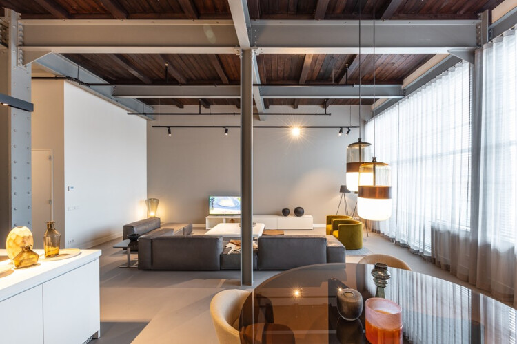 Er zijn 2 slaapkamers, beide met een en-suite badkamer. Beide slaapkamers zijn voorzien van Porro kledingkasten en Nilson double boxspringbedden met hoofdbord (180x200cm). De badkamers zijn voorzien van inloopdouche, prettig wastafelmeubel met zitje en een toilet. Daarnaast is er een apart gastentoilet met fontein en een technische ruimte met wasmachine en droger uit de Exclusiv-lijn van Bosch. De gehele inrichting oogt prettig en comfortabel dankzij het ontwerp van Noort Interieur, aangelicht door verlichting van Modular Lighting Instruments en diverse decoratieve armaturen uit de collectie van Noort. Van de prachtige gietvloer tot de houten plafonds is dit appartement gevuld met luxe. Naast aandacht voor de high-end inrichting is ook extra aandacht besteed aan duurzaamheid. Zo is de loft geheel gasloos en uitgevoerd met vloerverwarming en -koeling middels de warmte- en koude-bronnen.